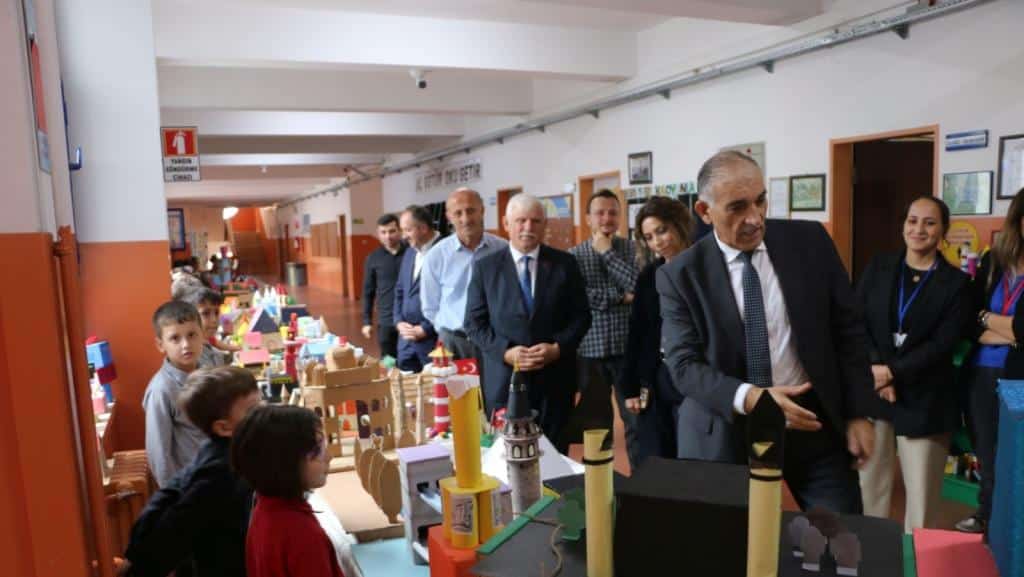 Okulumuz 2. Sınıf öğretmenleri tarafından düzenlenen geometrik cisimlerle makel oluşturma sergisini Milli Eğitim Bakanlığı Talim Terbiye Kurulu üyesi Mehmet Baki ÖZTÜRK ve Of İlçe Milli Eğitim Müdürümüz İdris KABAHASANOĞLU'nun katılımıyla gerçekleştirdik.